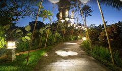 مسیرهای سنگفرش شده از میان جنگلهای انبوه درختان غول پیکر بانیان و جوز هندی منتهی میشوند، جایی که مجسمههای پوشیده از خزه و معابد باستانی از میان شاخ و برگهای انبوه خودنمایی میکنند و حس تقریباً عرفانی را القا میکنند.